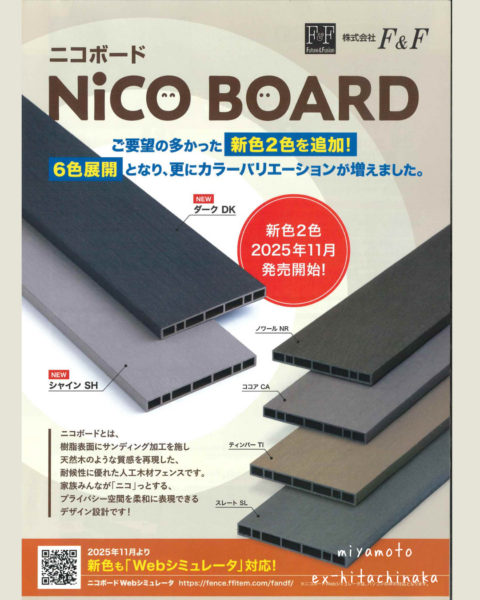 人工木フェンスF&F『ニコボード』新色追加発売🌱