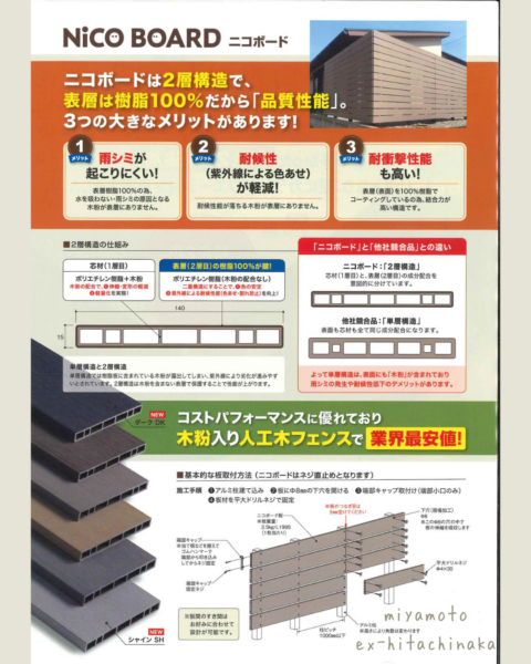 F&Fさんの人工木材フェンス『NiCO BOARD』