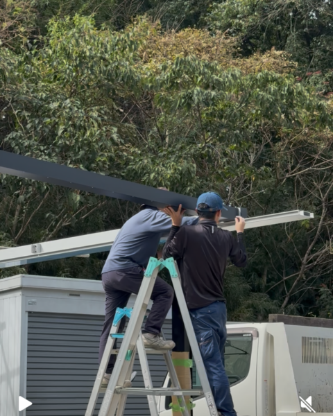 お店にもともとあるカーポートと並べて設置してもらいました!