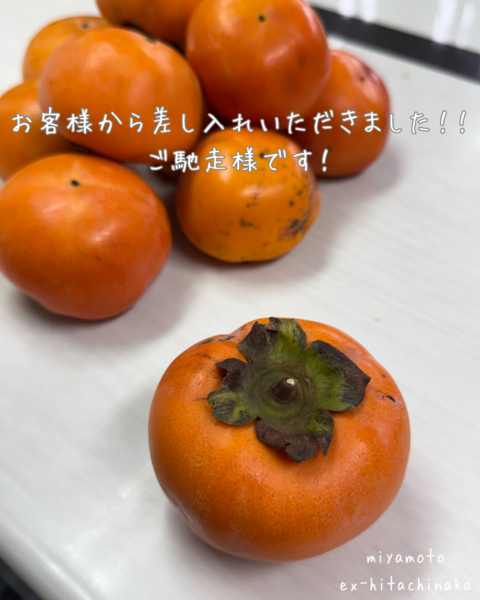 今年初『柿』差し入れいただきました😊 お客様から秋の味覚の『柿』を頂きました😊 今年初です!ご馳走様です✨ 茨城は旬の食材がたくさん! 直売所もあちこちにあるので秋の味覚をぜひ楽しんでくださいね🌱 Posted on: 2025年10月24日, by : manager