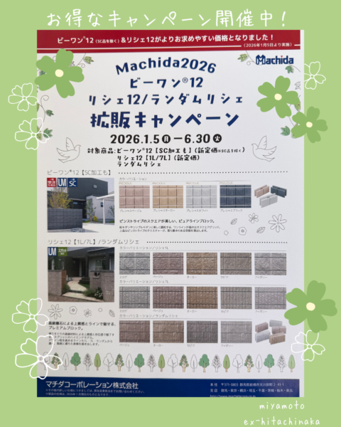期間中はお求めやすい価格になりますので、ぜひこの機会にご購入をオススメします!新築の外構工事はもちろん!