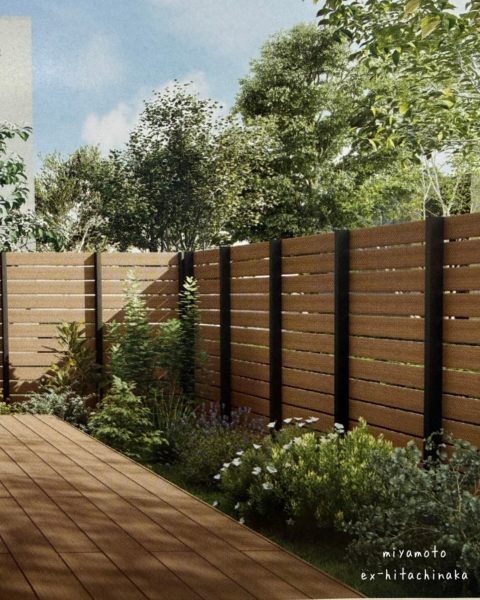 天然木のようなリアルな美しさがあるおしゃれなフェンス