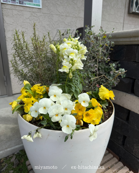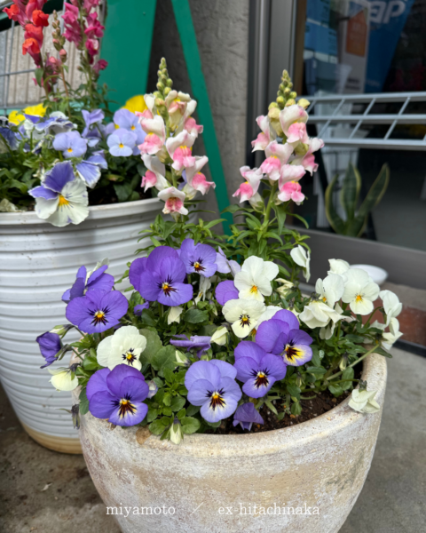 ほぼ緑だったお店前のプランターがとても明るくなりました🌷