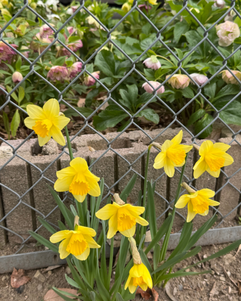 お店前の街路樹の根元に植えてある水仙が咲きました🌼