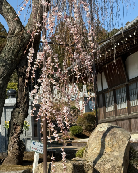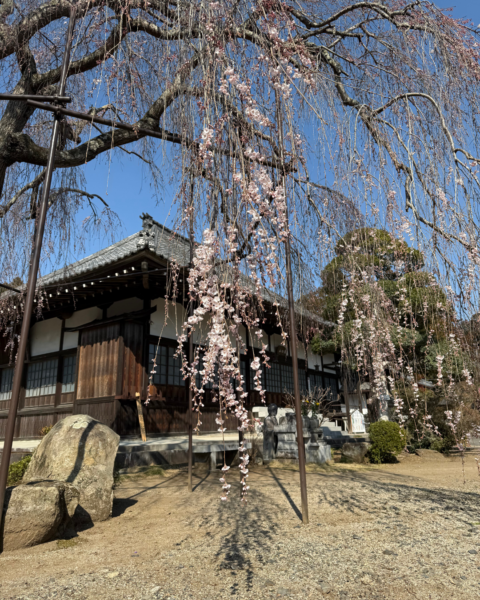 金剛寺の本堂のすぐ左手に見事な【しだれ桜】があります😊
