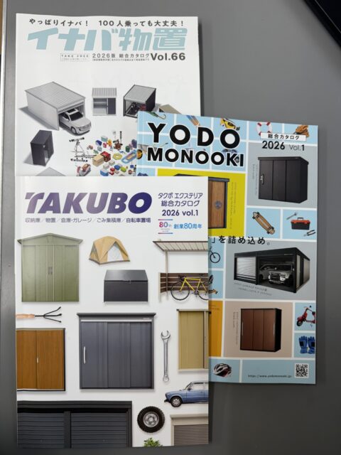 タクボ物置・ヨド物置・イナバ物置 3社の新カタログが揃いました!!