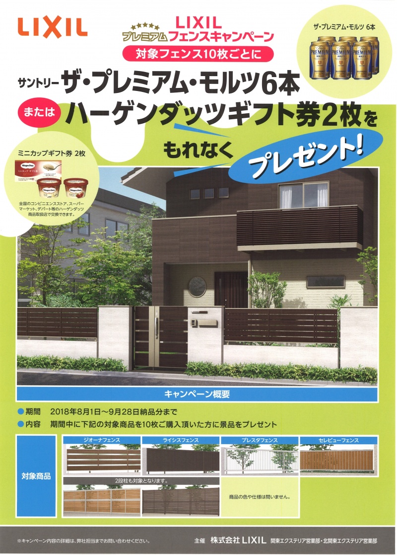 8月から、LIXILプレミアムフェンスキャンペーンが始まりました♪